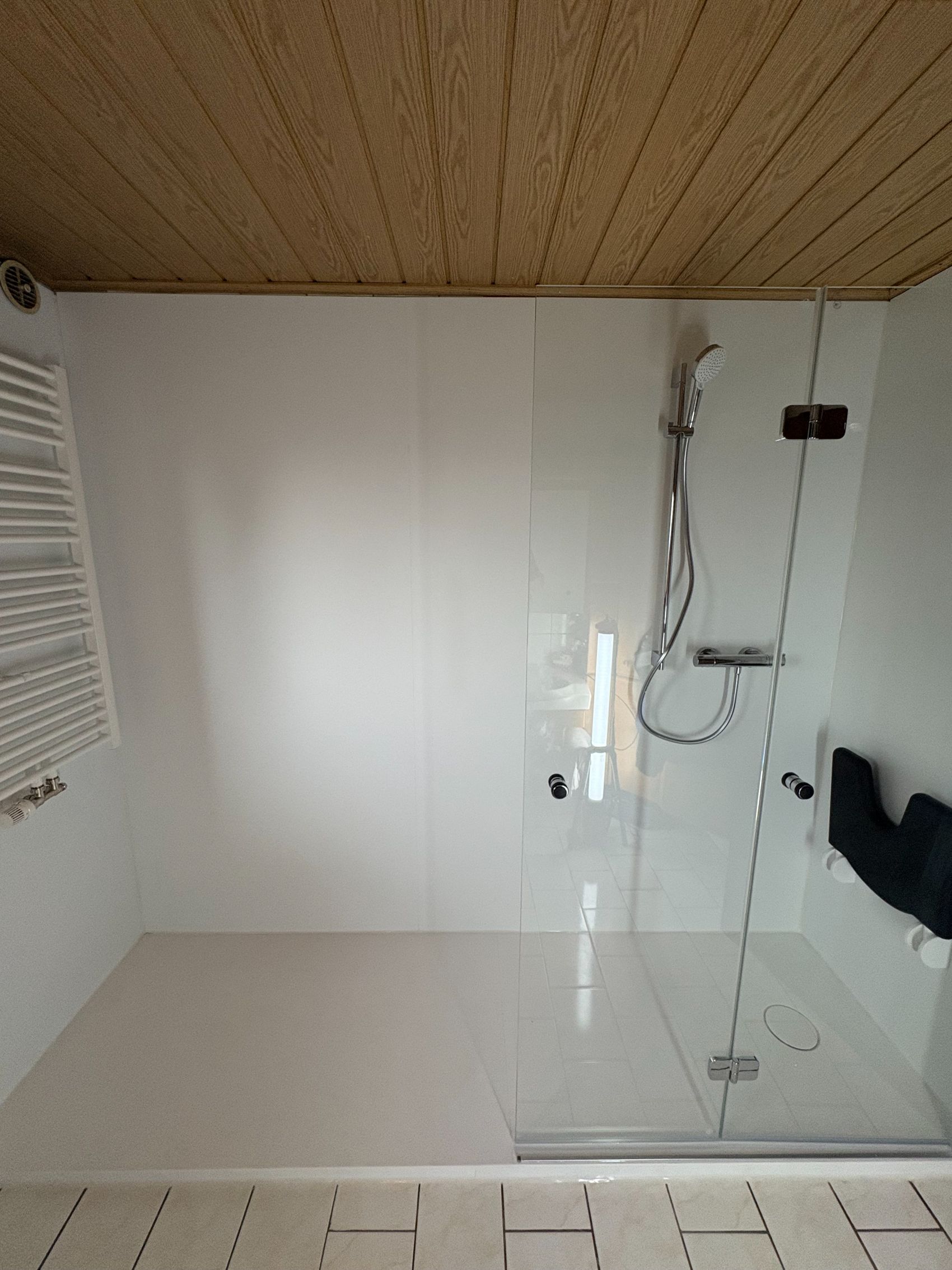 Für die Neugestaltung wurden hochwertige Komponenten der Marke Mauersberger verwendet, die für ihre Langlebigkeit und ihr funktionales Design bekannt sind. Die neuen Oberflächen und Sanitärelemente verleihen dem Badezimmer eine frische, zeitgemäße Optik und sind zudem besonders pflegeleicht. Durch die präzise handwerkliche Ausführung konnte der Umbau effizient abgeschlossen werden, sodass den Bewohnern nun ein moderner Duschbereich zur Verfügung steht, der höchste Ansprüche an Ergonomie und Qualität vereint.