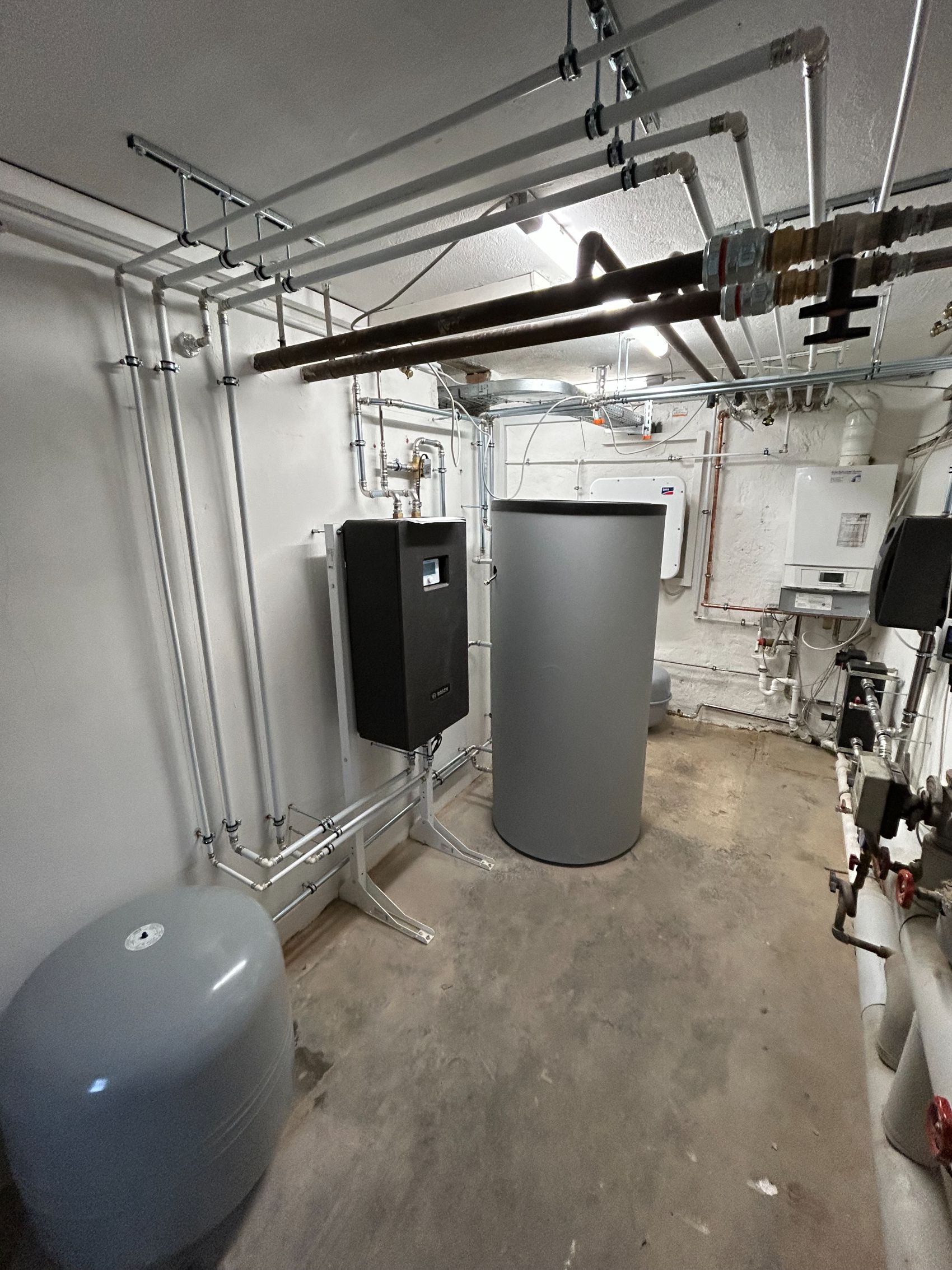 Parallel dazu wurde die zentrale Heizungsanlage technisch umfassend überarbeitet und für die Zukunft gerüstet. Durch die Ergänzung einer modernen Frischwasserstation wird nun eine hygienische und energieeffiziente Warmwasserbereitung im Durchlaufprinzip gewährleistet. Besonders hervorzuheben ist die vorausschauende Planung: Die Anlage wurde bereits mit allen notwendigen Vorsegelungen für die spätere Integration einer Wärmepumpe ausgestattet. Damit wurde die Grundlage für einen nachhaltigen Gebäudebetrieb geschaffen, der jederzeit einen unkomplizierten Umstieg auf erneuerbare Energien ermöglicht.